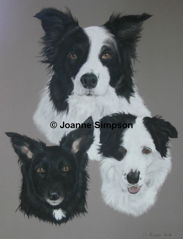 I gave Russ the triple yesterday afternoon, he was absolutely blown away, reduced him to tears, which set me off again! He said he's in awe of your talent, as am I. Murphy is exceptional as the focal point, so lifelike, but for both of us it's Skye and in particular Holly that has caused the emotional storm. You've brought them both back to life, for that we cannot thank you enough. Russ said they look so real he feels he can reach out and stroke them every time he looks at the portrait he gets tears in his eyes.